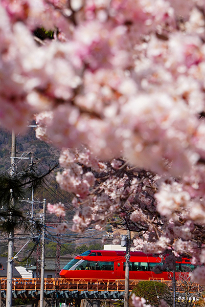 満開の春めき桜を眺めながらロマンスカーが行きました。