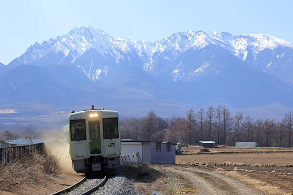畑の肥沃な土を勢いよく巻き上げ、疾走です。雪や雨(水)を巻き上げ走る姿は見ますが、土を巻き上げて走る列車は初めてです。