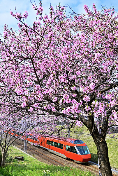 フラッグシップロマンスカーGSEが春を駆け抜けて行きます。