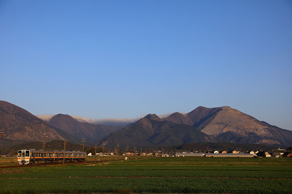 昇りたての朝陽を浴びて新鋭5000系が名撮影地を走り抜けた。