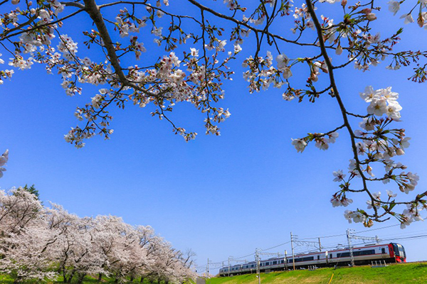 春まっただ中、特急が駆けていく。