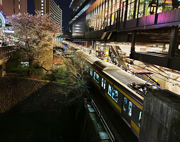 身近な場所で今年も夜桜とE231系のコラボを楽しめました