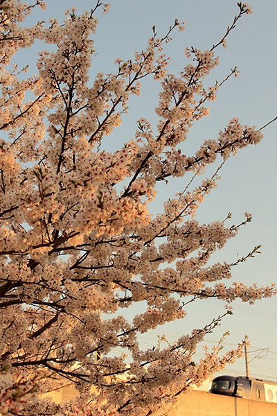 満開の桜の向こうに、『MOBラピート』チラリ。