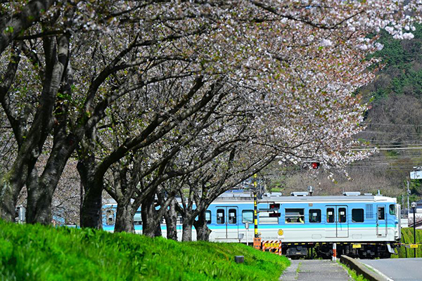 春の暖かな陽光の下、115系が懐かしいモーター音を轟かせて駆け抜けて行きました。