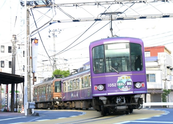 龍口寺前のS時カーブを二つのラッピングが顔を出す瞬間